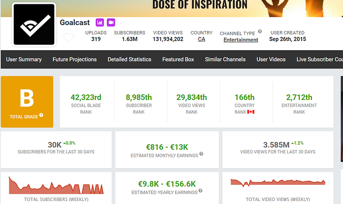 Identify the type of videos that you watch the most on Youtube. For me, for example, I watch a lot of compilations, pranks or top 10 videos. Why is that relevant? Because here you are going to find your gold mine. Most of the channels we´re watching are not using their own content. These channels go and find videos to reupload them in order to make money. They monetize their channels by using ads and affiliate marketing. It is totally legal and falls under fair use. One example is a channel that I watch a lot: Goalcast which regroups motivational speeches from inspiring people in different formats. Utilize your passions in order to increase the quality of your content.